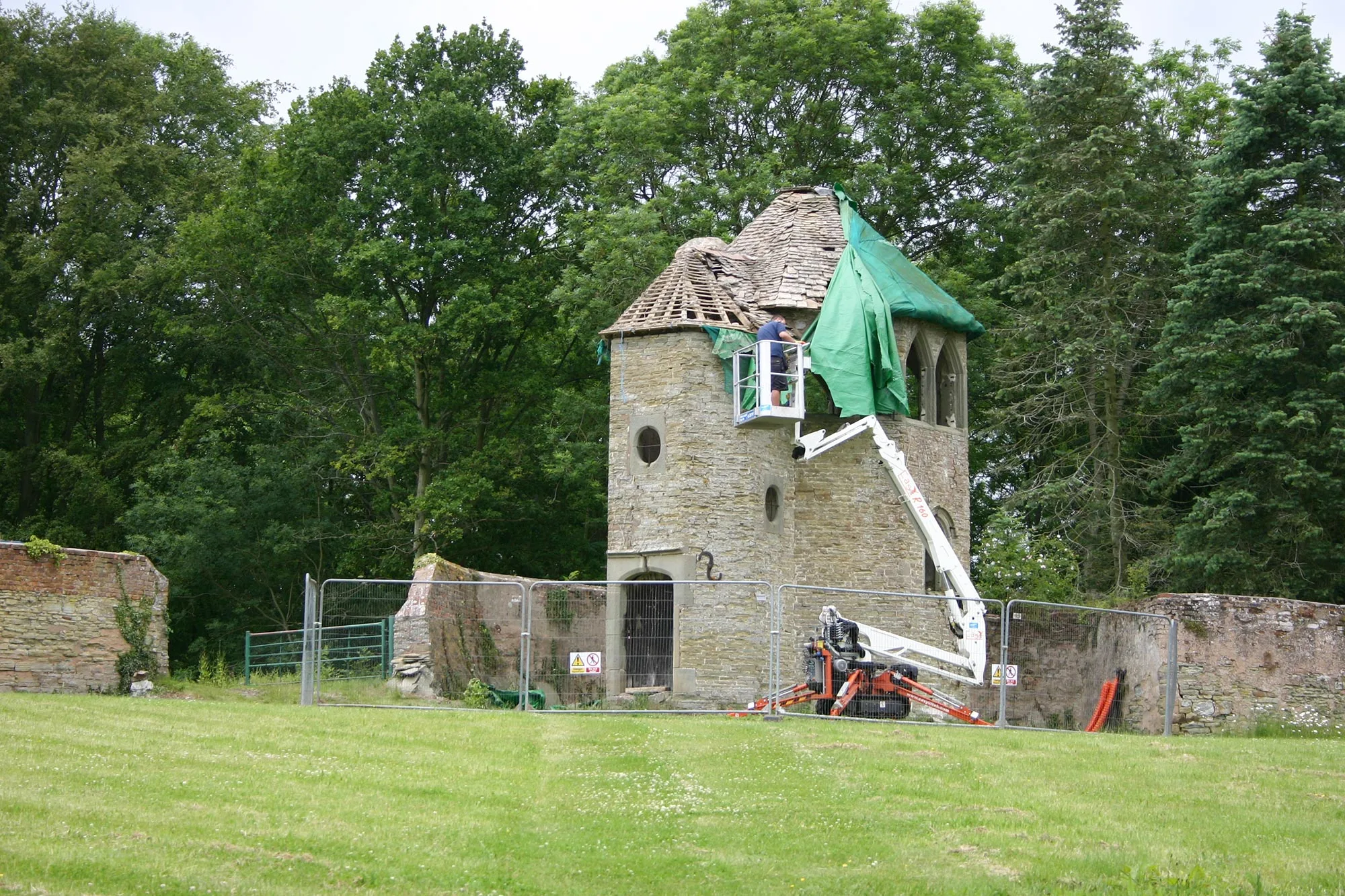 By the spring of 2011 the building was in danger of catastrophic collapse, and was rescued thanks to very generous support from English Heritage and the Country Houses Foundation (now Historic Houses Foundation), and an expert team including Richard K Morriss (architectural and archaeological assessment), Ian Stainburn (architect) and DA Cooke (heritage builders).