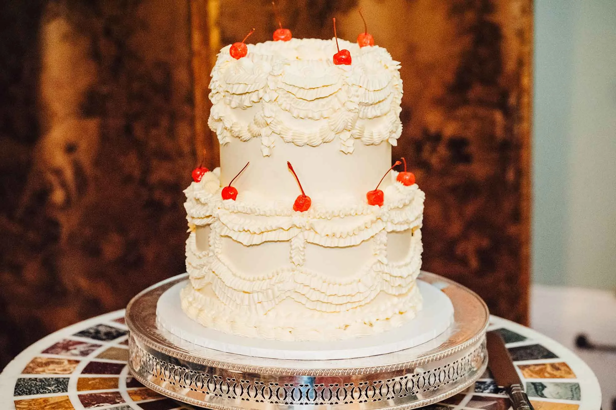 Depending on your answer to the previous question and depending on your numbers your cake designer will be able to suggest the perfect size cake for you. I have a guide in my wedding cake guide with examples for finger portions.