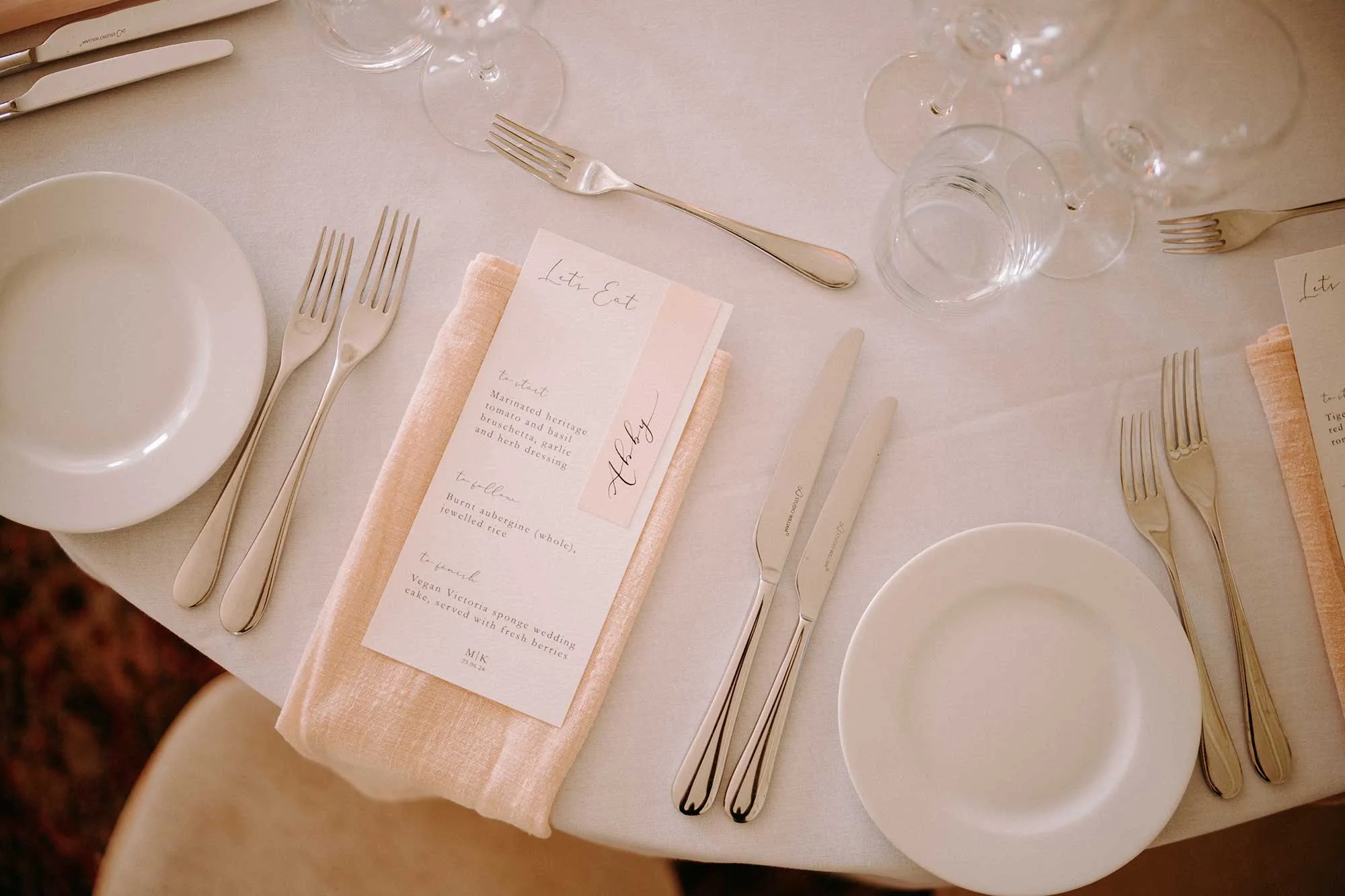If you are not opting for a choice it is still worth letting guests know your wedding day menu in advance. This pre-empts non-dietary eating preferences and avoids a guest telling us on the day that they do not eat beef, for example, allowing them to pre-select the vegetarian option in this case.